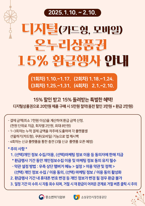 디지털 온누리상품권 15% 환급행사